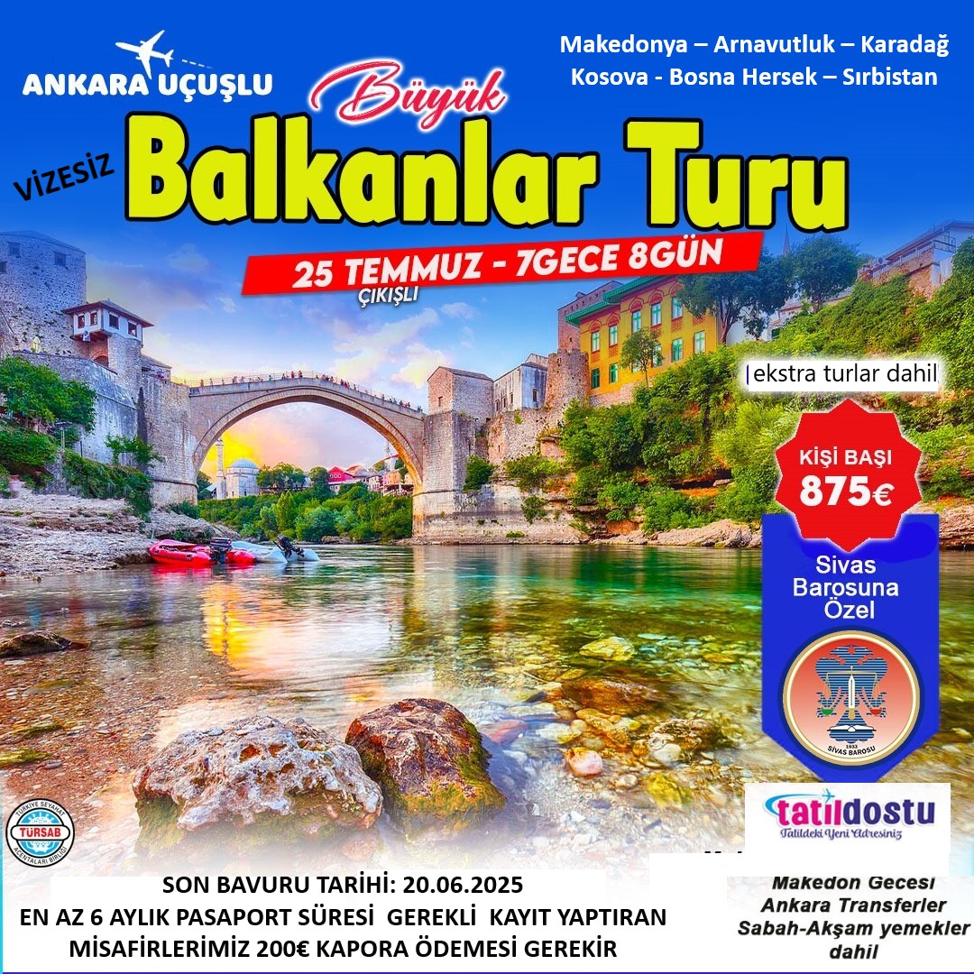 ANA SAYFA Balkan Turu Duyurusu. PAYLAŞ Duyurular Balkan Turu Duyurusu. Önemli Duyuru. 2025 Yılı Dergimiz Siz Okurlarıyla Buluştu KURBAN BAYRAMINIZ KUTLU OLSUN - 06.06.2025 MAKALE "4. YARGI PAKETİ" KINAMA - 25.08.2021 FAALİYET RAPORU 2021 NİSAN - AĞUSTOS YENİ ADLİ YILIMIZ KUTLU OLSUN HAYVAN HAKLARI İHLALİ HAKKINDA - 23.09.2021 TBB DUYURUSU - 28.09.2021